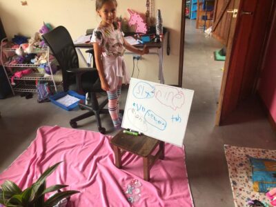 As with so much else in this pandemic, the one thing I know for sure is that there will be no going back to normal. Not completely. After the possibilities I’ve glimpsed during these long months and the protagonism we’ve had to grow into as parents, I know that whenever she can go back to a classroom, we’ll look at it differently. We’ll expect her schools to break down classroom walls and root instruction in Costa Rica itself, with all its richness and complexity. Most of all, though, I think we’ll expect more of ourselves. More, which sometimes means less: because perhaps the biggest lesson we’ve learned is how important it is for kids to find their own way.