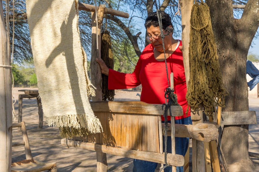 Un ejemplo del impacto positivo de los proyectos de conservación y desarrollo turístico en la comunidad local es la historia de Mabel Figueroa, una tejedora del paraje Pozo de la Gringa. Mabel, quien vive cerca del ingreso al Parque Nacional El Impenetrable en Chaco, transformó su práctica ancestral de tejer en telar y teñir lanas con tintes naturales —obtenidos de plantas del monte chaqueño como el mistol, el molle, el carandá y el palo santo—, en un emprendimiento que aporta ingresos a la economía familiar.