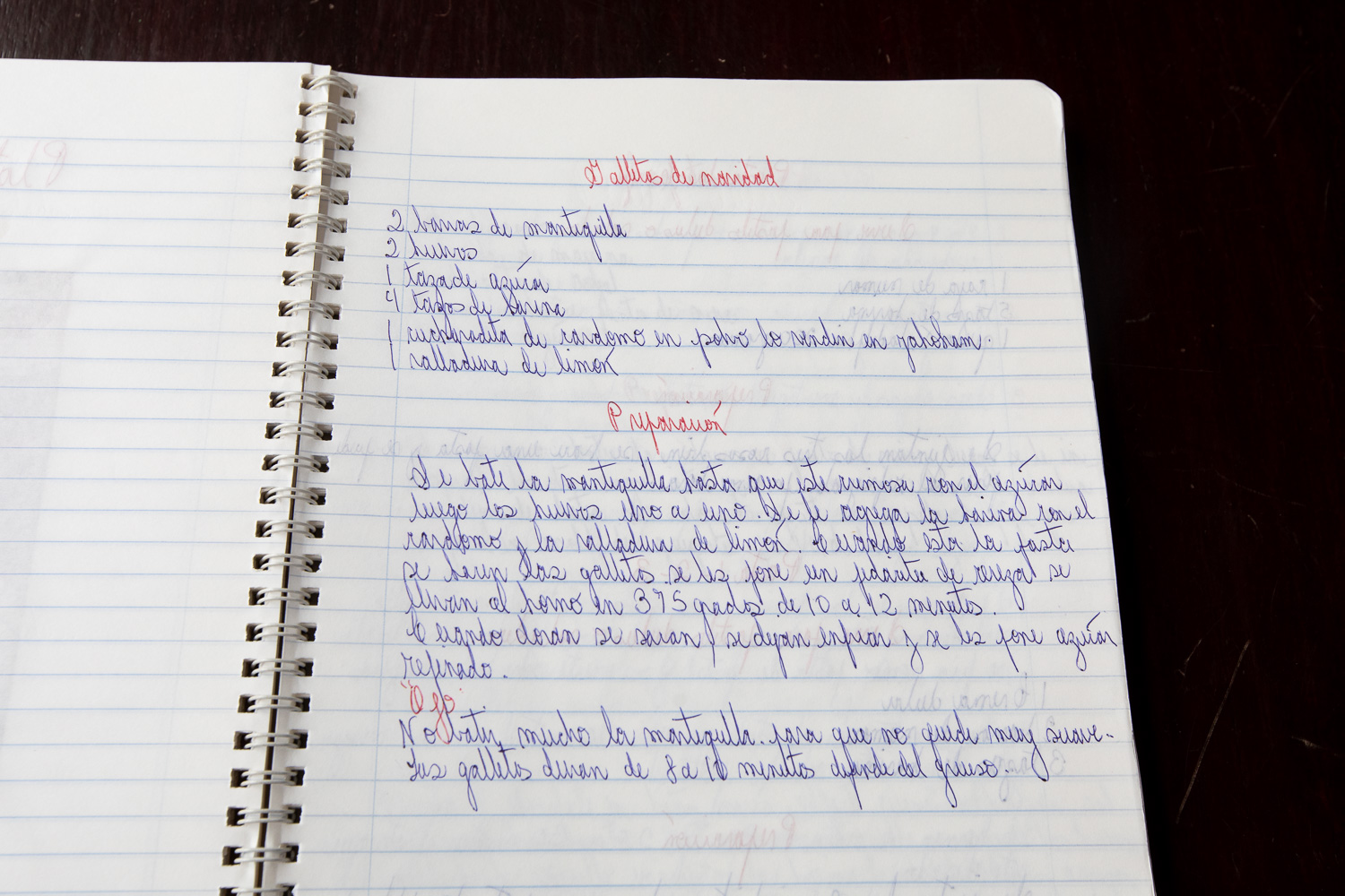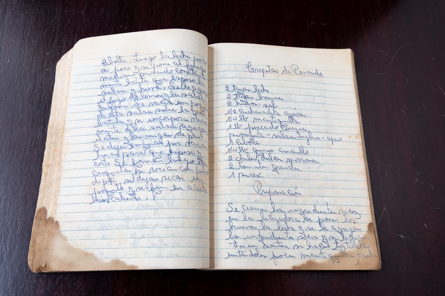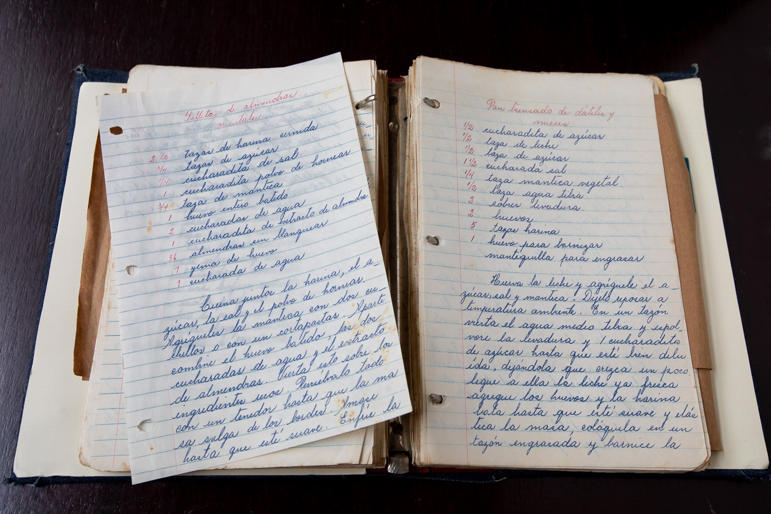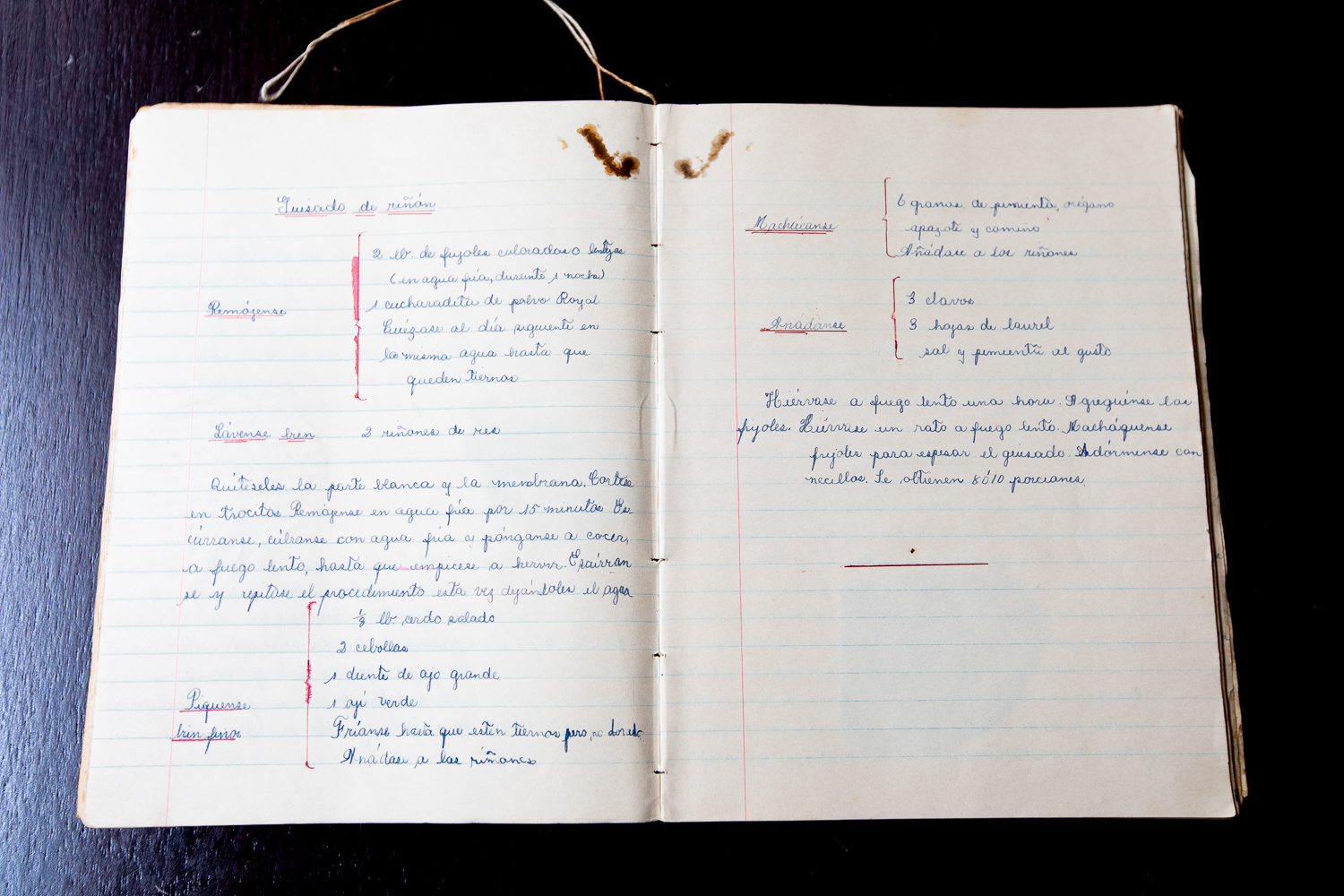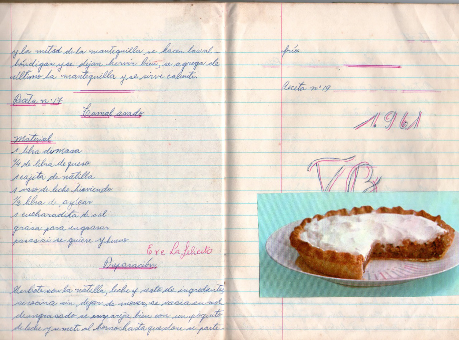 Un libro de recetas iniciado en los años 40 cuando iba a la escuela primaria, Vera DiNapoli, quien ahora tiene 83 años, es el más antiguo al que tuve acceso. Pero lo maravilloso de este recetario es que la autora ha ido incorporando nuevos volúmenes. Conforme preparó diferentes platillos incorporó procedimientos, ingredientes y consejos de amigas y familia. Tres volúmenes serán el patrimonio para sus nietas Isabela, Adriana y no tanto para su nieto Daniel.