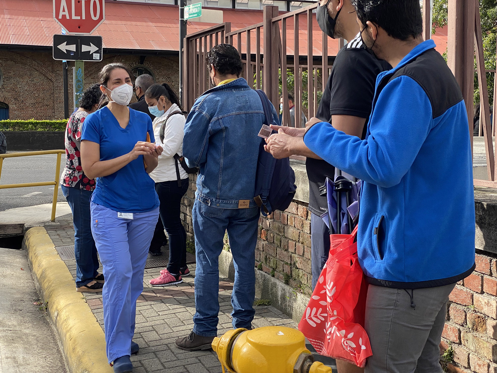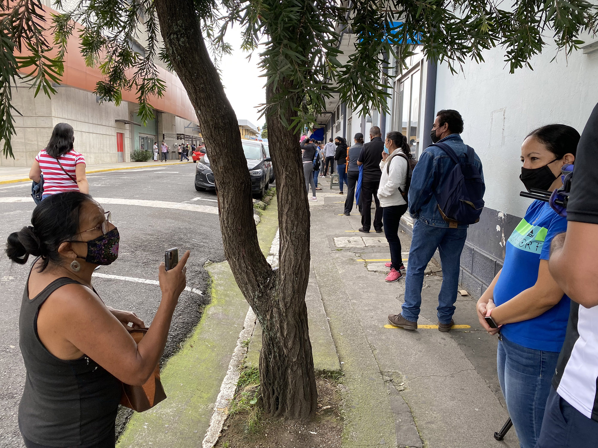 Le pregunté a este hombre vestido con shorts y gorra, como si estuviera paseando por la playa, que estaba contando a la gente en la fila. Llegué al Hospital Calderón Guardia en el centro de San José una hora antes, con la esperanza de obtener una de las 1,000 vacunas contra el COVID-19 de la marca Pfizer que el hospital administraría ese día a cualquier persona mayor de 40 años que quisiera vacunarse.