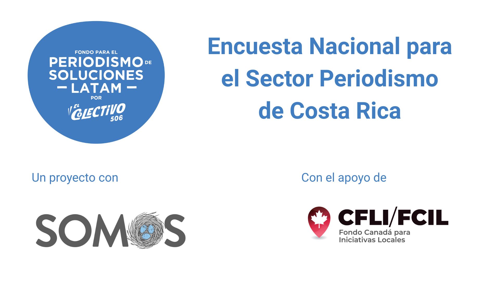 Invitamos a todas las personas que ejercen el periodismo y la comunicación en Costa Rica a participar de nuestra Encuesta Nacional para el Sector Periodismo de Costa Rica. Sus respuestas nos permitirán construir un espacio de formación que realmente les ayude y además seguir buscando oportunidades de financiamiento para la producción periodística en nuestras comunidades. Al final de la encuesta, las personas que ejercen el periodismo fuera del GAM* pueden continuar con una aplicación, si gustan, para recibir una beca de formación de ₡75.000,00 (hay 20 espacios).