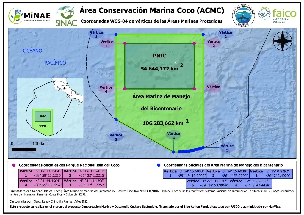 Mapa del Área Marina de Manejo del Bicentenario. Fuente: https://isladelcoco.go.cr/cartografia/