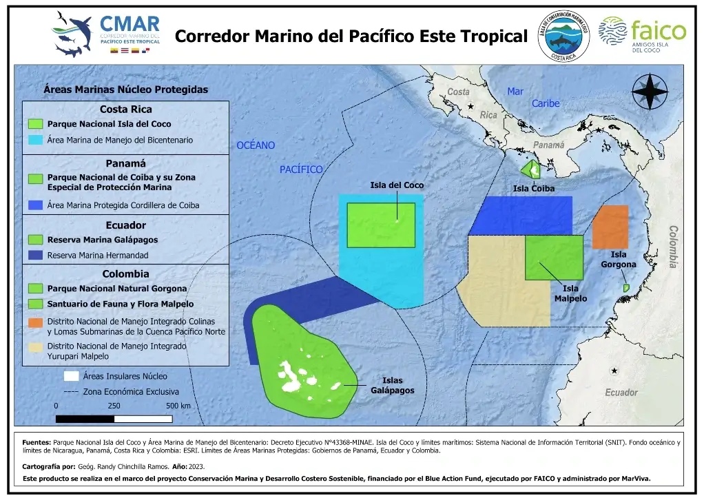 Mapa del Corredor Marino de Conservación del Pacifico Este Tropical (o CMAR). Fuente: https://isladelcoco.go.cr/cartografia/