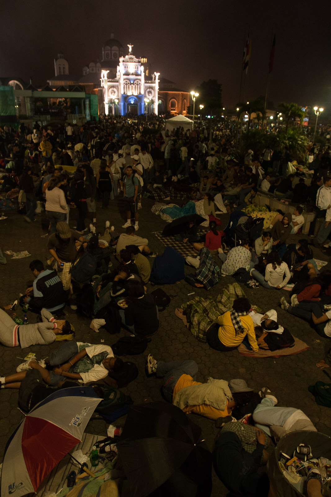 Dos policías de tránsito vigilan a la multitud con sombría autoridad mientras el palito de sus popis hace un baile inconfundible en su boca. Un sacerdote rocía agua bendita a los que pasan. Una persona ciega golpea con su bastón a lo largo de la carretera mientras los autos pasan zumbando en una proximidad sorprendente y sus compañeros lo sostienen por los hombros. La gente usa de todo, desde jeans hasta pijamas, pies descalzos y ropa deportiva elegante, lo que puede o no ser ridículo dependiendo de lo lejos que está el punto de partida. En cierto modo, es una zona libre de juicios en términos de vestimenta y grado de agotamiento de las personas. Nunca se puede saber si alguien salió de su casa para dar un paseo de 5 km o comenzó a caminar en Los Chiles.