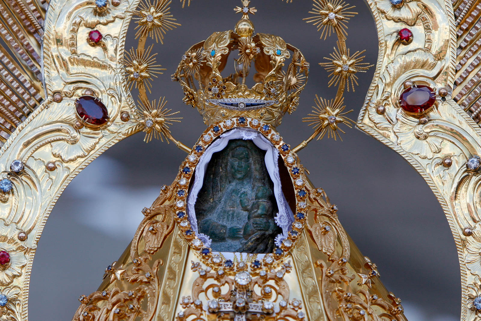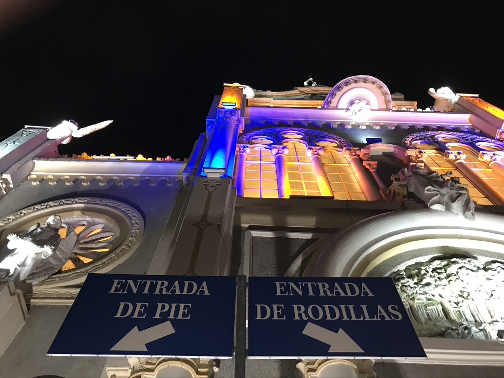 El tramo de Taras a la Basílica siempre es mucho más largo de lo que una espera, y entonces, justo cuando cree que sus pies pueden desintegrarse en una bocanada de humo, aparece. Nunca he apreciado más la maestría teatral de la Iglesia, su arte escénico perfeccionado por el tiempo, que al final de esa caminata. Una cosa es entrar a una iglesia recién salido de un bus o carro; algo completamente diferente es entrar después de cinco horas caminando en la oscuridad. La música, el incienso y los colores de la estructura parecen abrumadores, alcanzando su punto máximo en el oro brillante que rodea el más humilde de los destinos, la diminuta estatua de piedra de la Virgen que todas estas personas han venido a ver. Miro a mi alrededor y pienso: esto es lo que solía sentir uno al entrar a una iglesia. Esto es lo que algunas personas todavía ven.