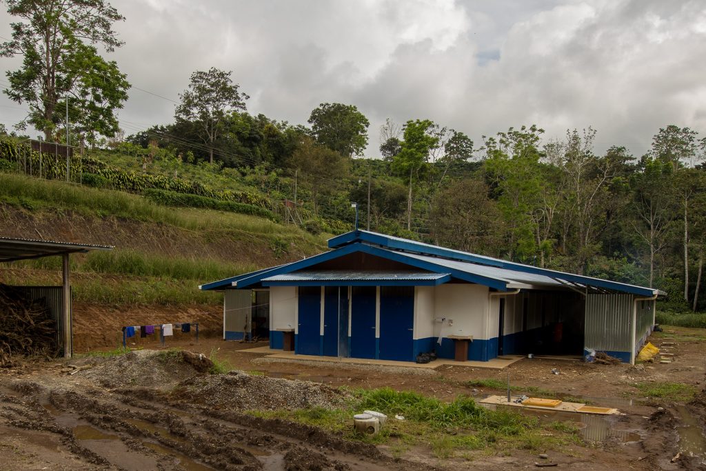 Afortunadamente, el refugio COVID-19 estaba listo para aislar a los trabajadores infectados. Su refugio queda separado del resto de instalaciones de la finca, cerca de un recodo del río que da nombre a la finca. (Muy pocas fincas en Costa Rica son lo suficientemente grandes como para tener su propio alojamiento de aislamiento. En Tarrazú, Cooperatarrazú construyó un enorme hospital de campaña con capacidad para 250 pacientes; se encuentra esperando, casi vacío, en el estadio municipal de San Marcos de Tarrazú. Como resultado, la región de Los Santos, que tiene algunas de las tasas más bajas de infección por COVID-19 de Costa Rica, también es una de las mejor preparadas para una ola de casos).