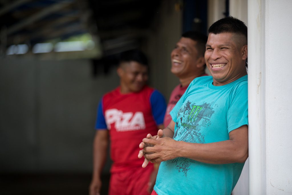 Si bien algunos agricultores nos dicen que los migrantes indígenas y los nicaragüenses no se mezclan bien en el cafetal, y que es mejor elegir una fuente de trabajadores y ceñirse a ella, la educadora Marleni Ureña aquí en la Casa de la Alegría nos dice después de un periodo de adaptación, “todos juegan juntos”. Dicho esto, hay obstáculos interculturales que superar. El Dr. Pablo Ortíz de Hands for Health, que originó el modelo Casas de la Alegría en Coto Brus, relata que al inicio del proyecto, “San José dictaba hasta el menú, y el menú decía, yogur de arándanos. Brócoli. Manzanas. Uvas. Los niños indígenas jugaban al fútbol con las manzanas … un día le preguntaron a una niña indígena, ‘¿Por qué no come el brócoli?’ Y ella dijo: ‘Doctor, no comemos árbolitos’”.