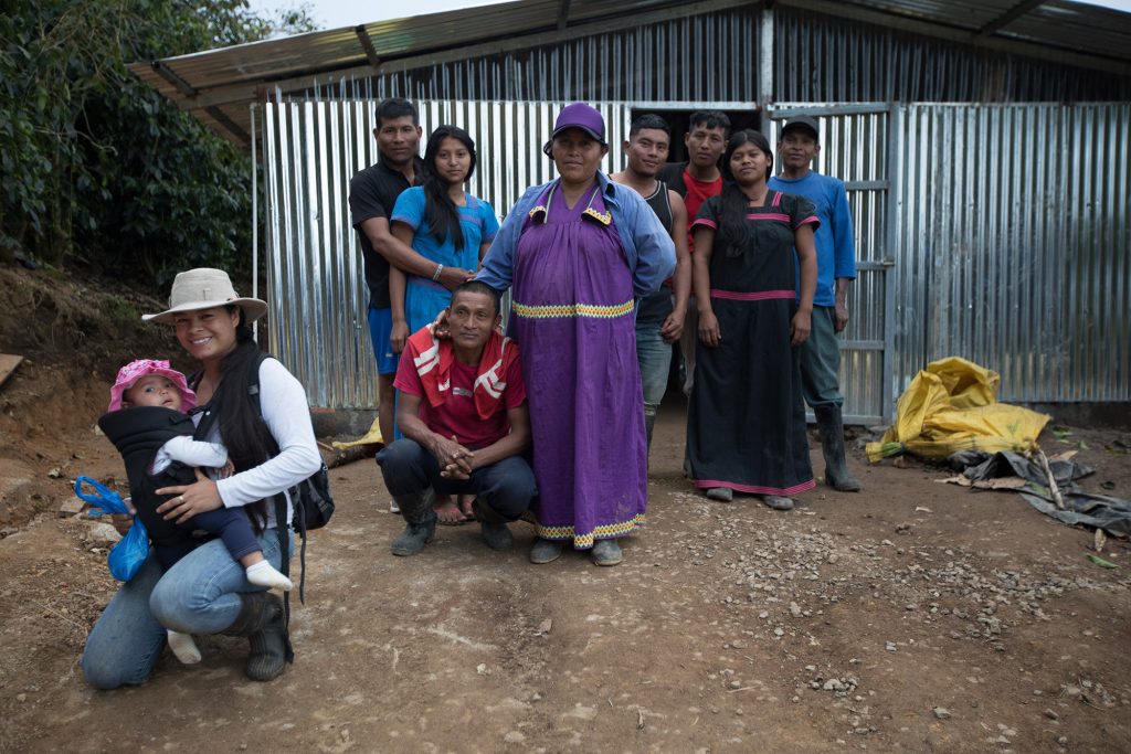 La primera vez que Lucidia Hernández entra al albergue de sus trabajadores, aplaude de alegría. “Ay, qué lindo”, dice, al ver una ventana en el área de la cocina que se abre a las espectaculares y ondulantes montañas del Valle de los Santos. “¡No había visto esta parte!” La razón por la que esta es su primera vez dentro de este nuevo edificio es su pequeña hija Ruth, quien ha hecho la caminata montaña arriba en una mochila porta bebé. Lucidia no ha pasado tanto tiempo en su cafetal este año como de costumbre.
