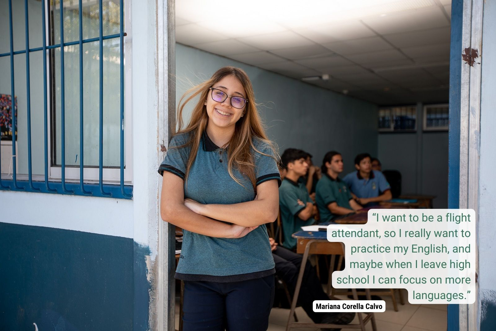 “I’m really new to this. I never even knew that there were schools that have bilingual sections, so I was really impressed,” says Mariana. “I think this is something really good for students that really want to make a career out of this, so they can speak English. I was in a private school, I have been in a private school all my life, but since COVID and everything, I came here.
