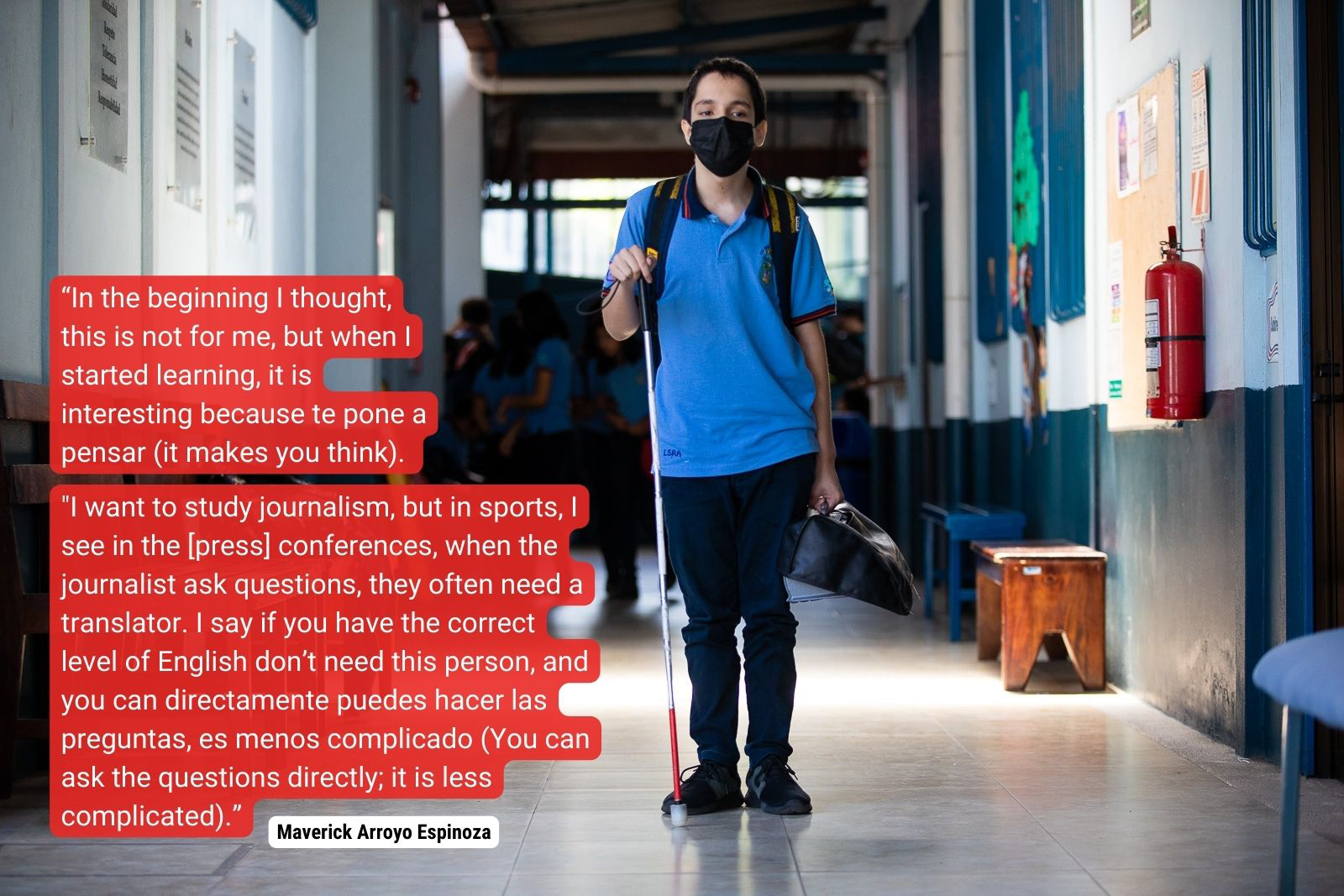 “I watch movies in English. Everything I have is in English. That is how I learn English,” says Yareth about how he has polished what he learns at school. “I learned a bit of English before entering high school, and thanks to my dad right now I have the opportunity of being here.”