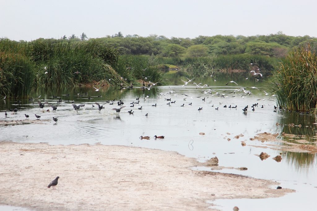 Of the wetlands identified in the country, only one—Santa Julia—is located within the city of Piura. It formed naturally after the rains of 1983 on a former brickyard site. The clay soil prevented the water from filtering through, and over time, the area became a large lagoon.
